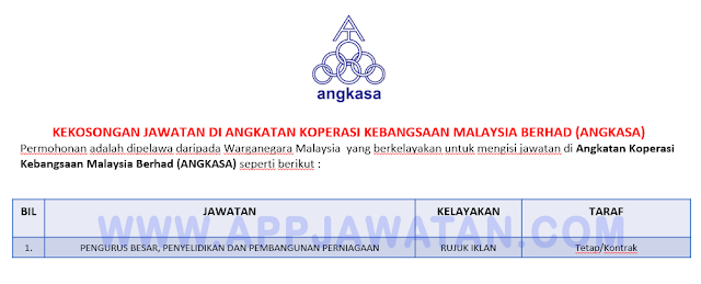 Jawatan Kosong Terkini Di Angkatan Koperasi Kebangsaan Malaysia Berhad Angkasa Appjawatan Malaysia