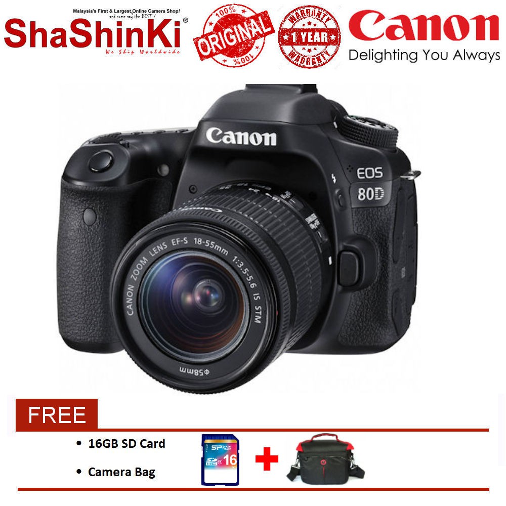 Canon Eos 80d Dslr Camera With Ef S 18 55mm F 3 5 5 6 Is Stm Lens Free 16gb Bag Screen Protector Import Shopee Malaysia