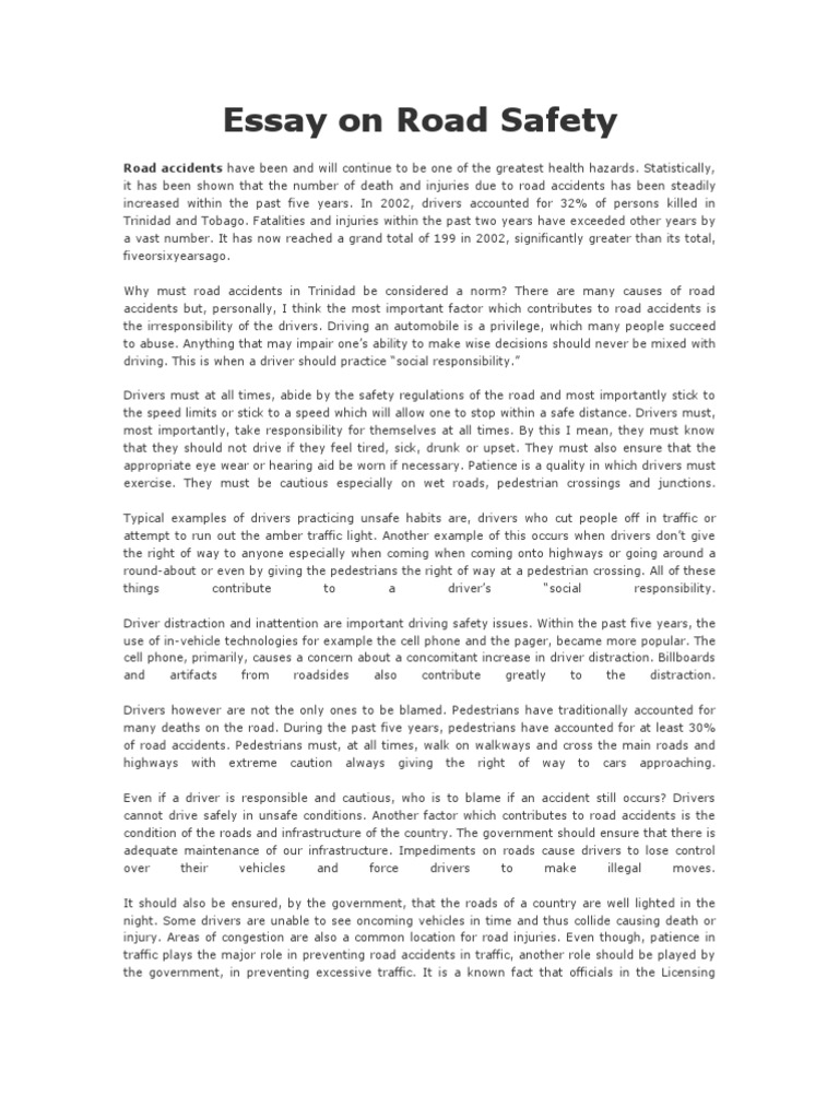 Essay On Road Safety Traffic Collision Traffic