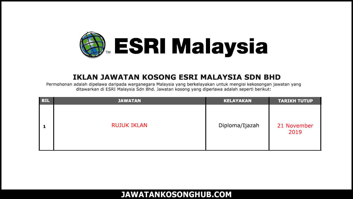 Jawatan Kosong Terkini Esri Malaysia Sdn Bhd