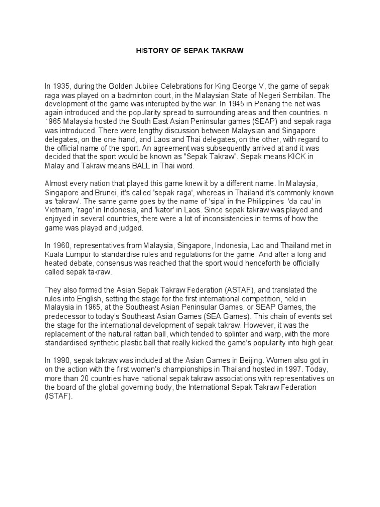 History Of Sepak Takraw