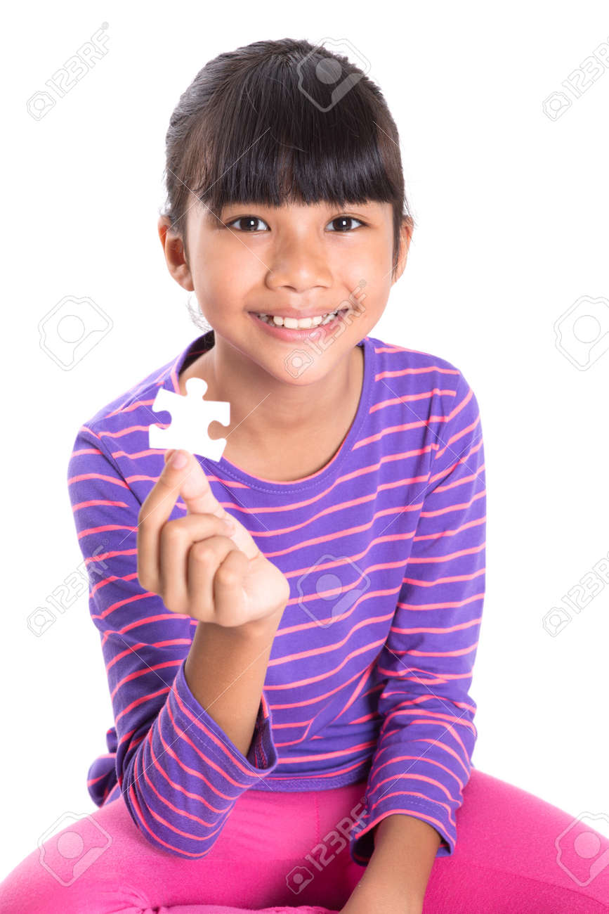 Young Asian Malay Girl With Jigsaw Puzzle Pieces Over White Background Stock Photo Picture And Royalty Free Image Image 27753953