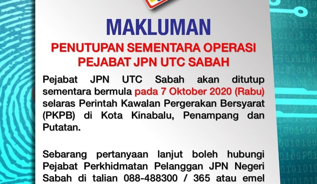 Waktu Operasi Kaunter Jpn Utc Kota Kinabalu Keningau Di Tukar Sepanjang Pkpb Ini Sabah News Bebas Bersuara