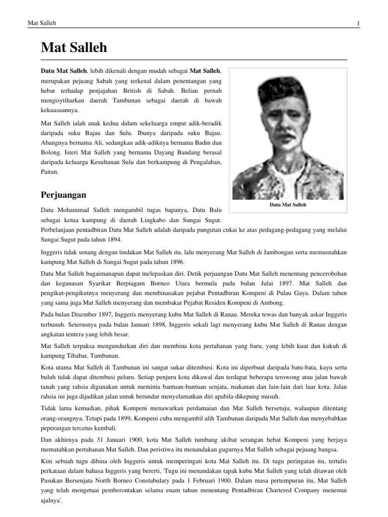 Penentangan Mat Salleh Di Sabah Pdf Document