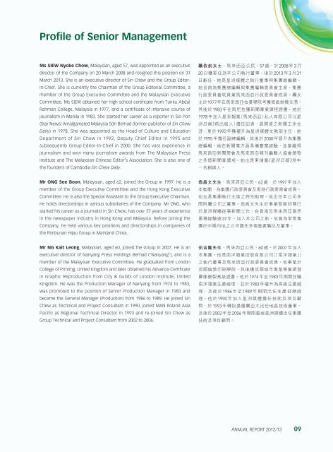 Profile Of Senior Management Media Chinese International Limited
