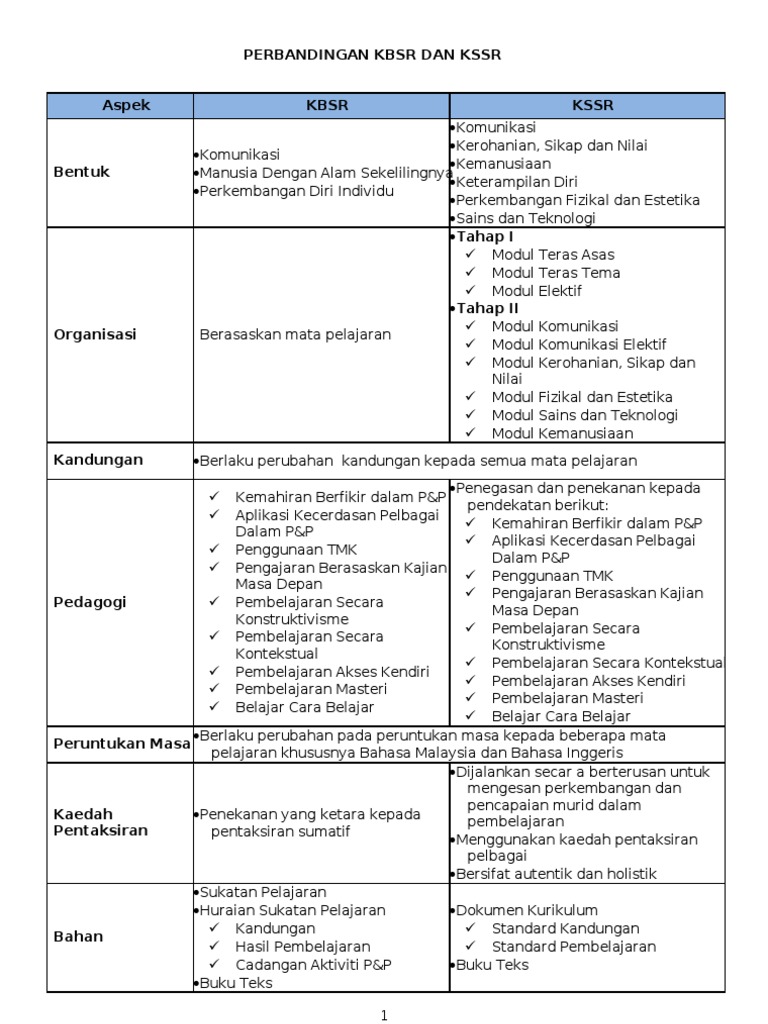 Banding Beza Aspek Dalam Kbsr Dan Kssr