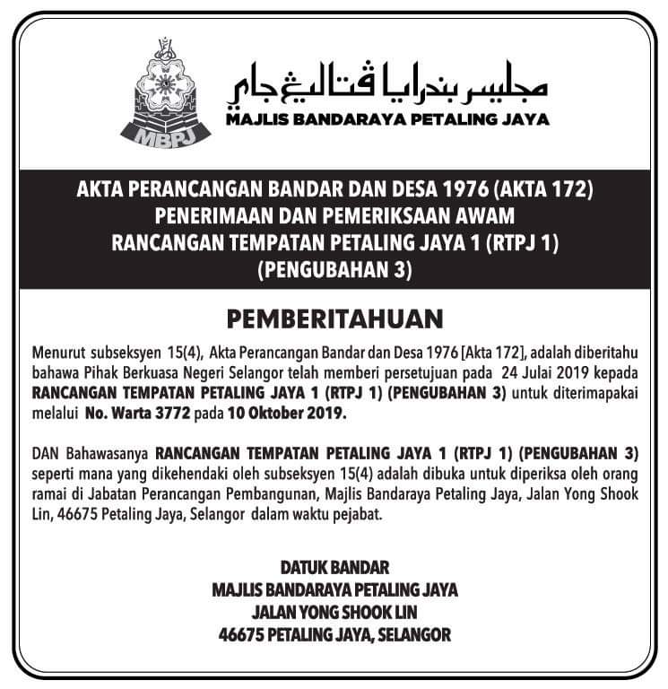 Mbpj On Twitter Notis Iklan Rancangan Tempatan Petaling Jaya 1 Rtpj 1 Pengubahan 3 Notis Pewartaan
