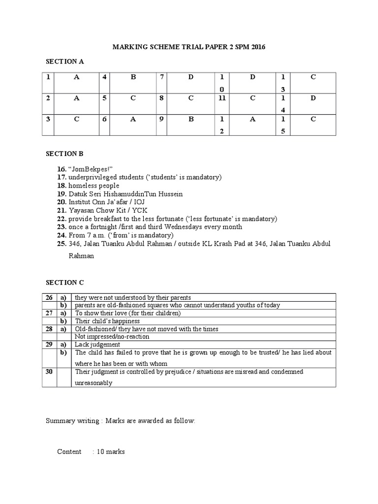 Marking Scheme Trial Paper 2 Spm 2016 Punctuation Adolescence