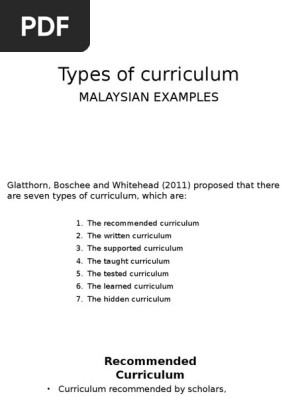 Malaysian Examples Of The Various Types Of Curriculum Pptx Curriculum Educational Assessment