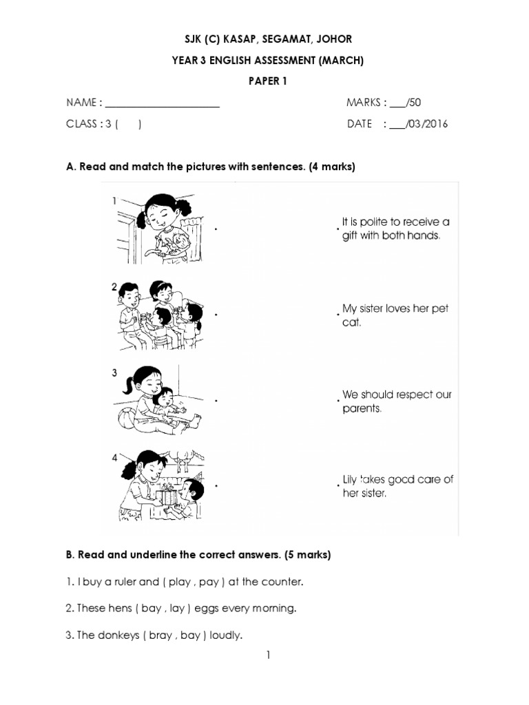Year 3 Assessment March 2016 English Paper 1